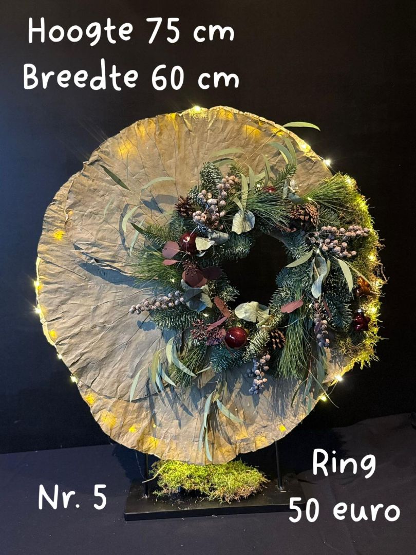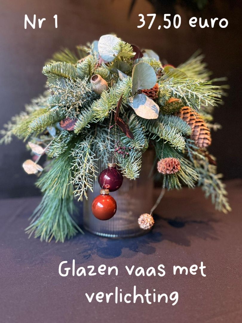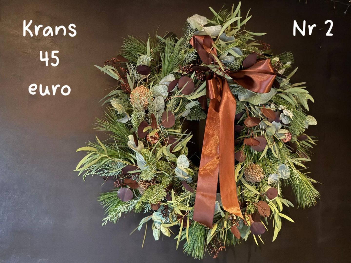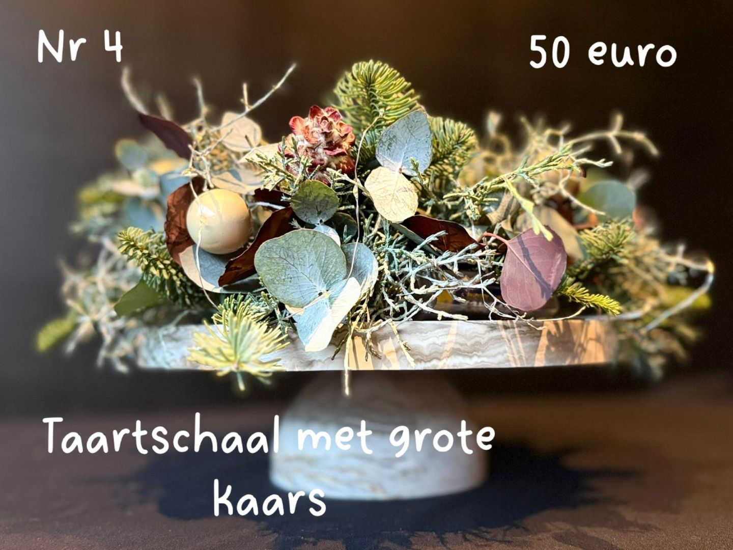 Maak je eigen kerstkrans. of maak een mooi kerststuk op een unieke taartschaal (handgegoten) en een handgemaakte kaars.